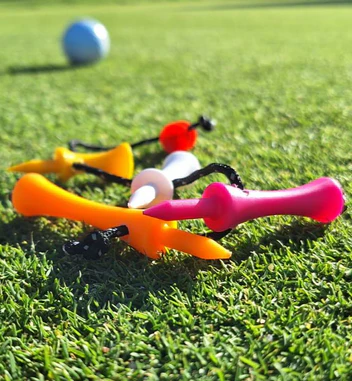 Le premier prototype répond à un problème simple : éviter de perdre ses tees. Il prend la forme d’un lot de 5 tees reliés entre eux.